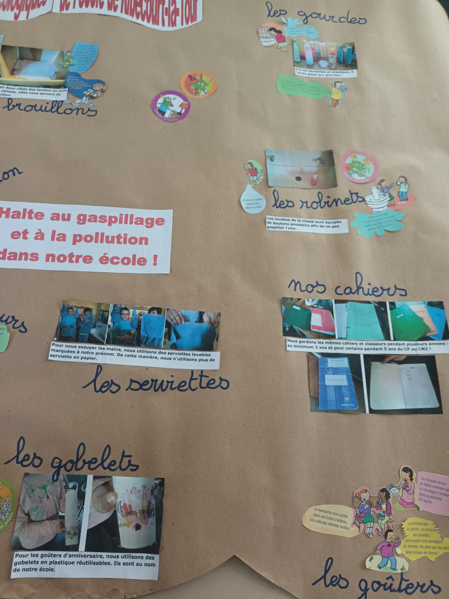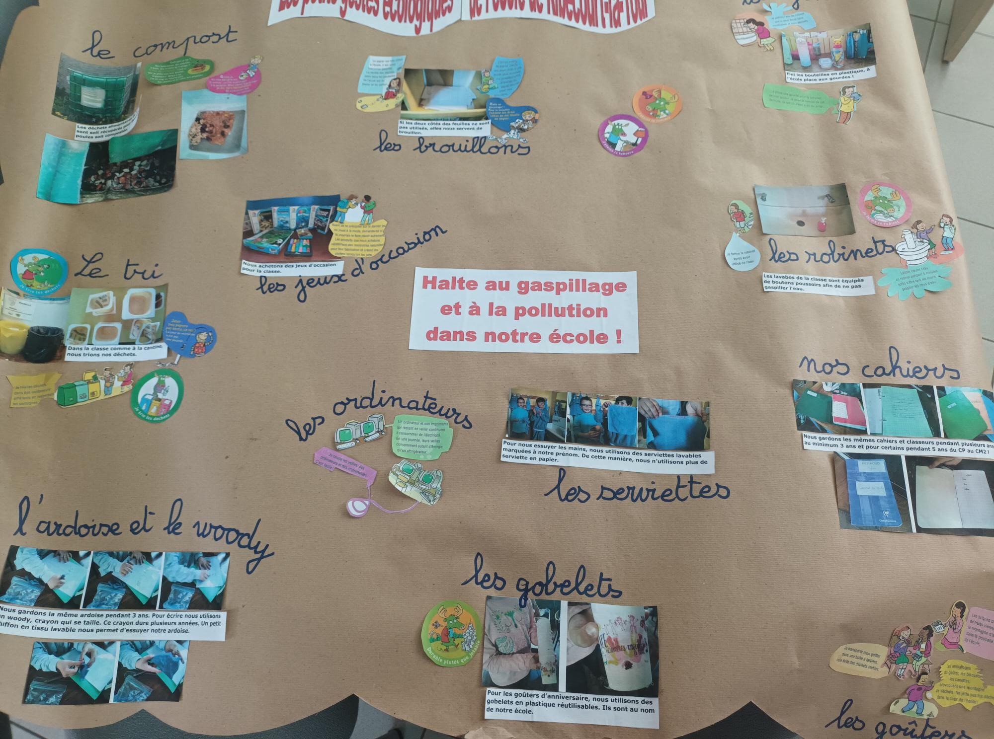 Les élèves se sont mobilisés autour de la création d’un film et d’affiches mettant en lumière les écogestes qu’ils pratiquent au quotidien dans leur école, ainsi que les pistes d’amélioration envisageables pour un établissement plus respectueux de l’environnement.